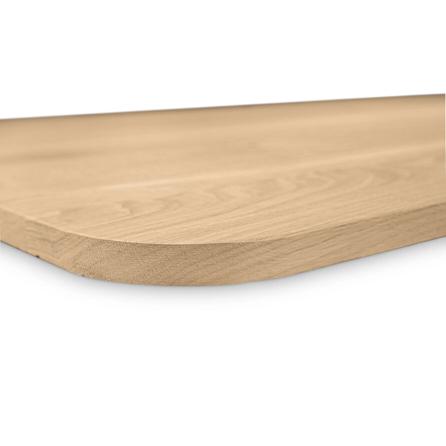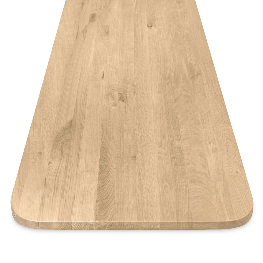 Eiken tafelblad - ronde hoeken - op maat - 3 cm dik - rustiek eikenhout (B/C) - verlijmd, smalle lamel - 30 mm