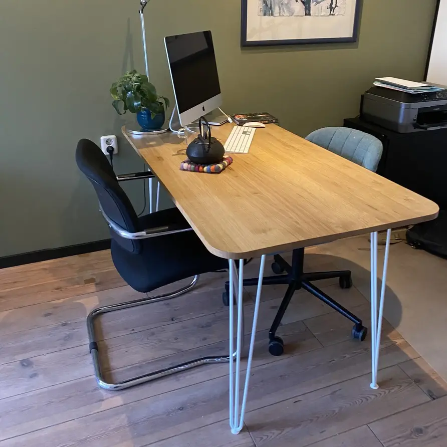 Rustiek eiken (B/C) staat bekend om zijn sfeervolle en warme uitstraling. Het eikenhout is kunstmatig gedroogd (kd) en heeft een vochtpercentage van 8-12%, ideaal voor binnengebruik. Het eiken tafelblad wordt opgebouwd uit doorgaande lamellen in de lengterichting, met een breedte van 4-10 cm, wat een veelvoorkomende lamelbreedte is. Standaard wordt het eiken tafelblad onbehandeld, fijn geschuurd (finish) & met afgeronde randen (2 mm radius) geleverd. Daarnaast bieden wij diverse extra opties om uw tafelblad volledig naar wens af te werken.