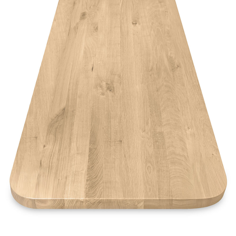 Eiken tafelblad - ronde hoeken - op maat - 4 cm dik - rustiek eikenhout (B/C) - verlijmd, smalle lamel - 40 mm