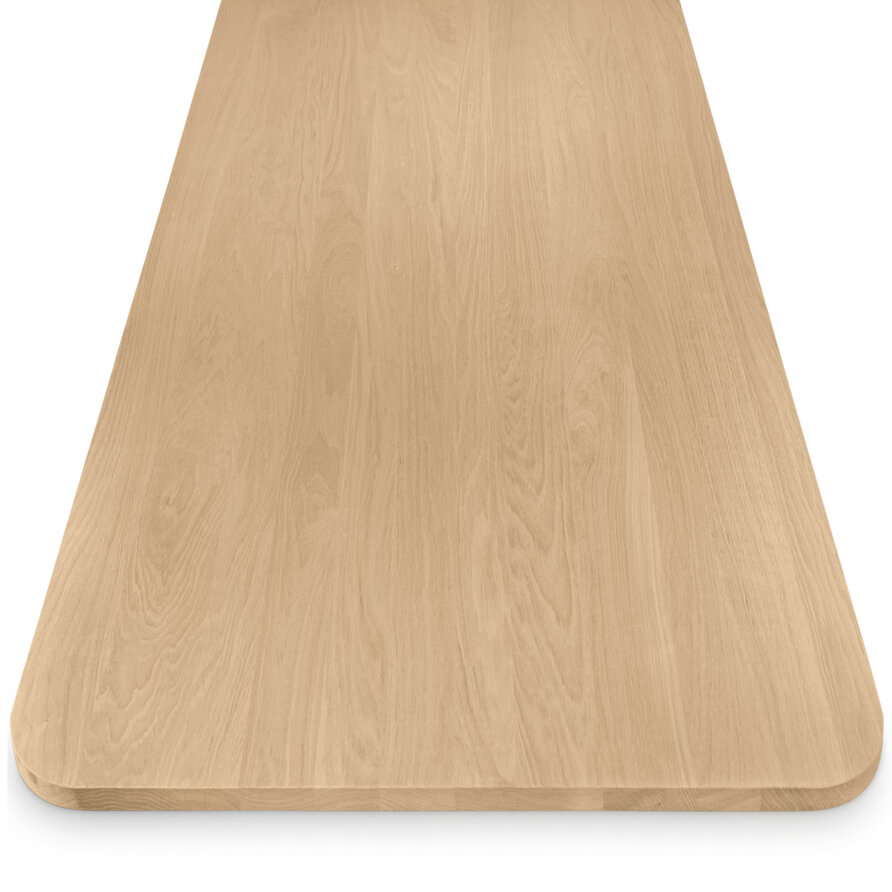Een eiken tafelblad met ronde hoeken - van stijlvol foutvrij eikenhout en 2,7 cm dik - dat op maat wordt gemaakt. Een prachtig verlijmd tafelblad met een modern accent & luxe brede lamel, optioneel met verjongde rand. Configureer naar wens! Lees meer