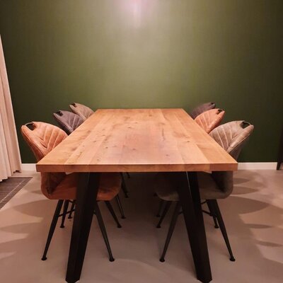 Rustiek eiken (B/C) staat bekend om zijn sfeervolle en warme uitstraling. Het eikenhout is kunstmatig gedroogd (kd) en heeft een vochtpercentage van 8-12%, ideaal voor binnengebruik. Het eiken blad wordt opgebouwd uit doorgaande lamellen in de lengterichting, met een breedte van 9-12 cm, oftewel speciale brede lamellen! Standaard wordt het eiken tafelblad onbehandeld, fijn geschuurd (finish) & met afgeronde randen (2 mm radius) geleverd. Daarnaast bieden wij diverse extra opties om uw tafelblad volledig naar wens af te werken.