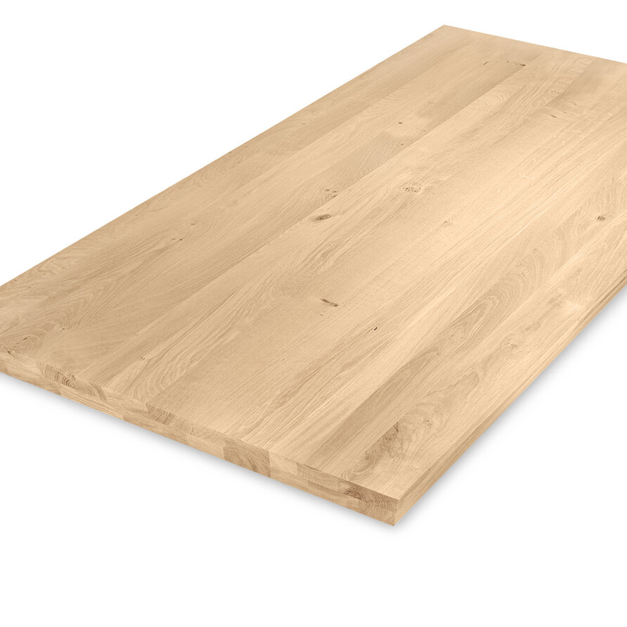 Eiken tafelblad - op maat - 4 cm dik - 2-laags massief - rustiek eikenhout (B/C) - verlijmd, smalle lamel - 40 mm