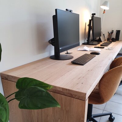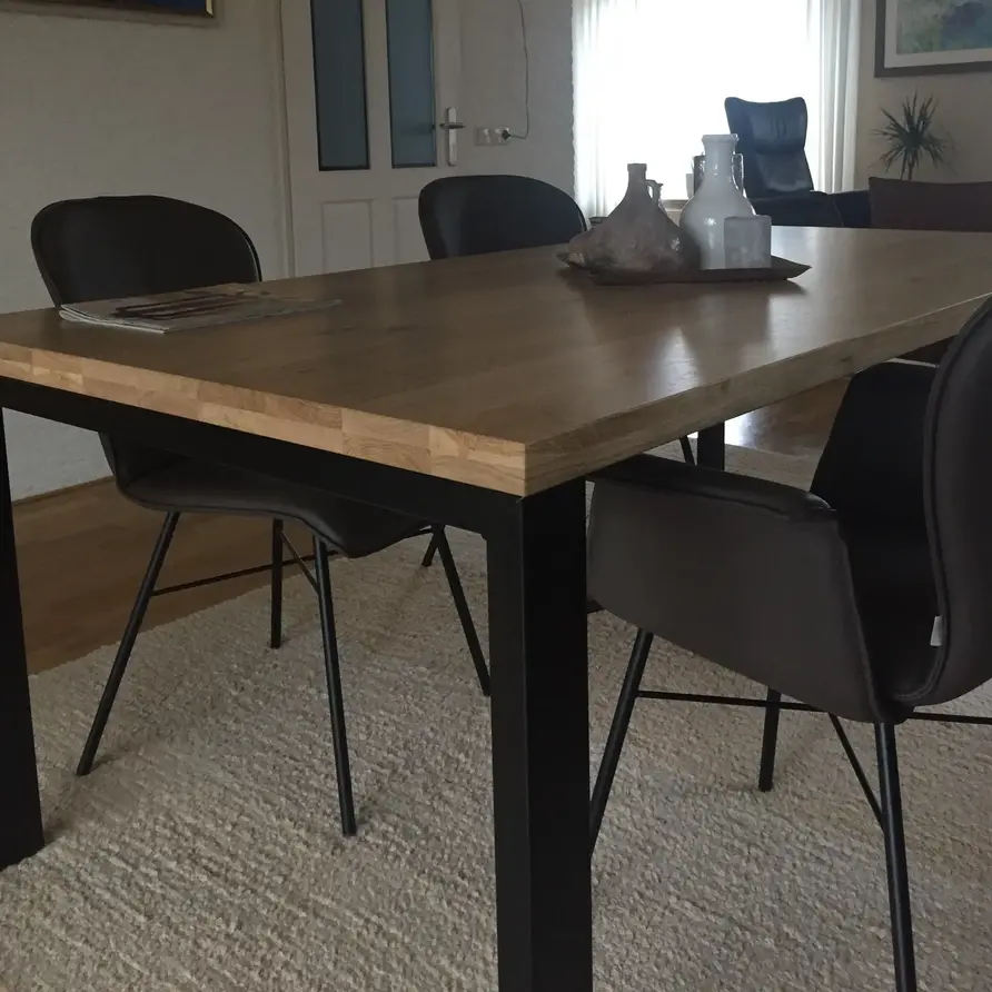 Een eiken tafelblad - van sfeervol rustiek eikenhout en 4 cm dik, 2-laags rondom opgedikt - dat op maat wordt gemaakt. Een prachtig verlijmd tafelblad (smalle lamel) & zeer toegankelijk. Diverse randopties, configureer uw tafelblad compleet naar wens! Lees meer