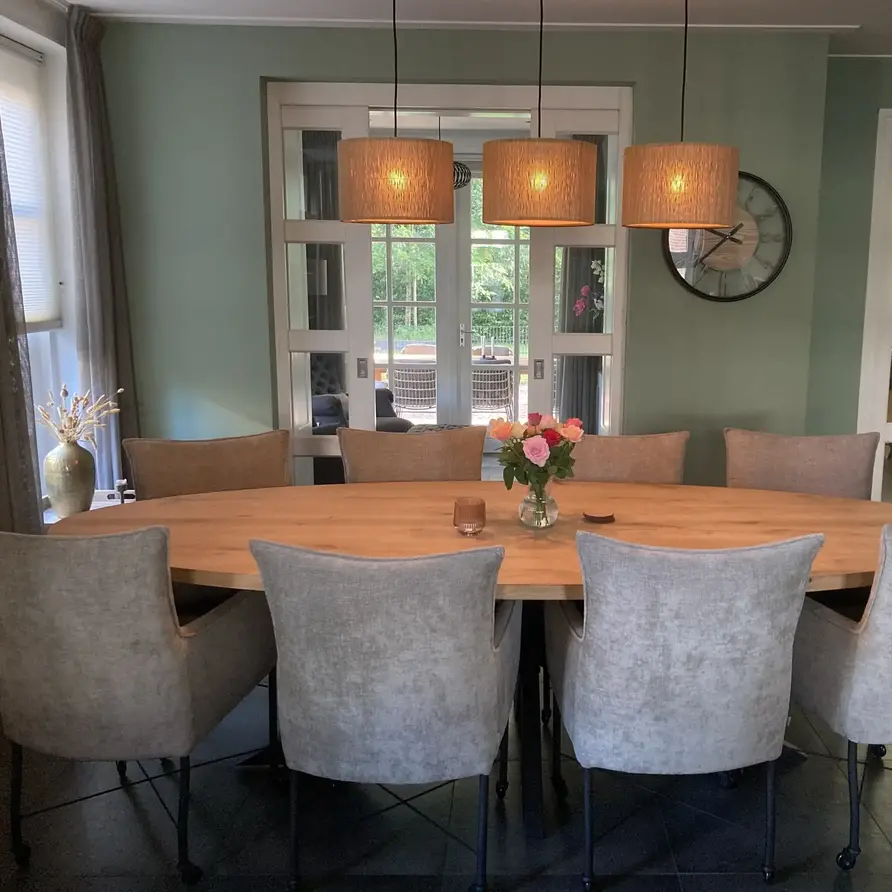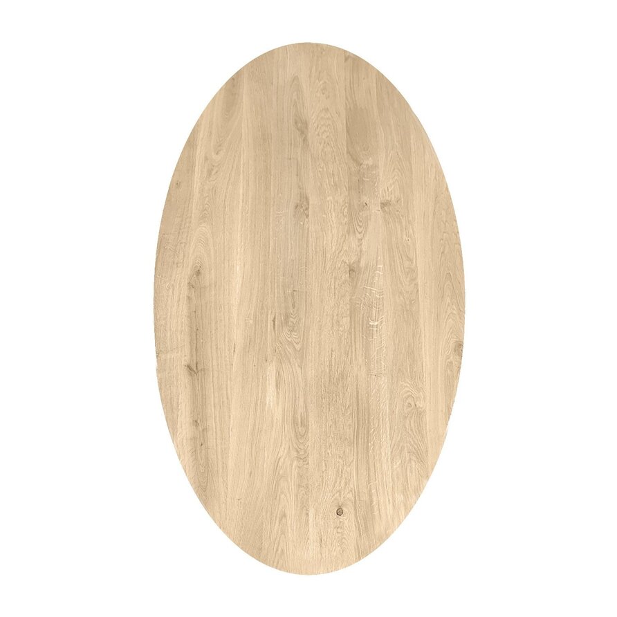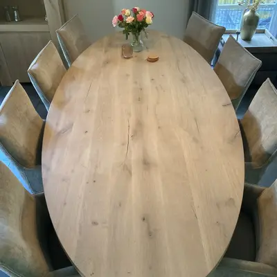 Een ovaal eiken tafelblad - van sfeervol rustiek eikenhout en 4 cm dik - in verschillende (vaste) afmetingen. Een prachtig verlijmd ellips tafelblad (medium lamel) met elegante uitstraling. Configureer uw eikenhouten tafelblad compleet naar wens! Lees meer