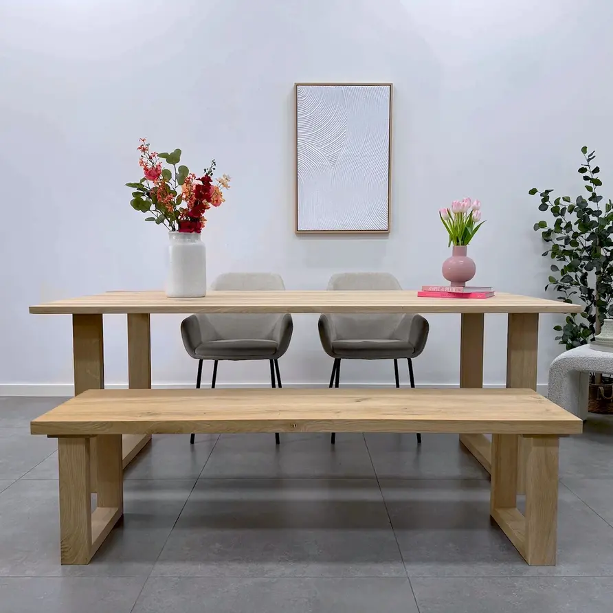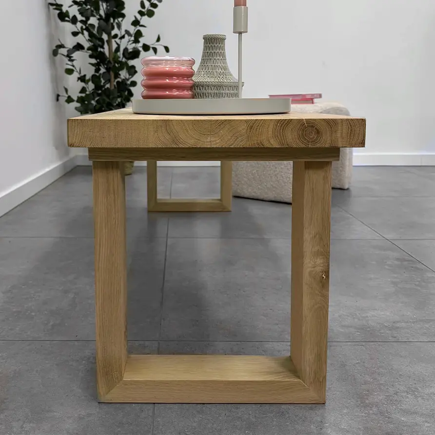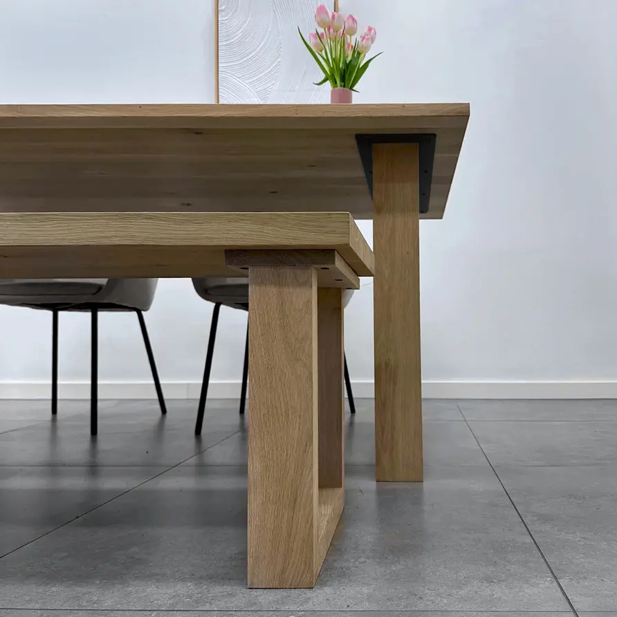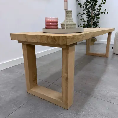Een eikenhouten U bank poot set van rustiek eikenhout, ideaal voor een stijlvol eetkamertafel bankje. Deze mooie eiken poot wordt ambachtelijk gemaakt, met veel zorg & aandacht voor detail. De stijlvolle U-vorm, de elegante 8x4 cm "balkmaat" en het warme rustieke eikenhout zorgen voor een prachtige eiken bank poot, erg populair in combinatie met onze eiken (bank)bladen. Het rustieke eikenhout heeft een B-kwaliteit zichtzijde met noesten en scheuren. Dit zorgt voor een levendig en natuurlijk uiterlijk. De poten worden als set van twee stuks geleverd, en de weergegeven prijs is altijd de setprijs.