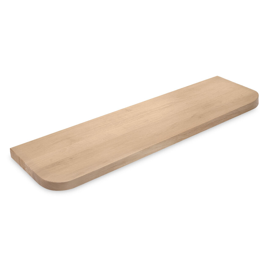 Eiken wandplank zwevend - met ronde hoeken - op maat - 4 cm dik - foutvrij eikenhout (A/B) - incl. blinde plankdragers (onzichtbaar) - brede lamel (9-12 cm) - 40 mm