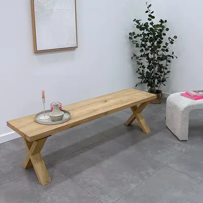 Eiken X bankpoten - rustiek - balk: 8x4 cm - breedte: 36 cm - hoogte: 41 cm - X-poot bankje - rustiek eikenhout (B/C)