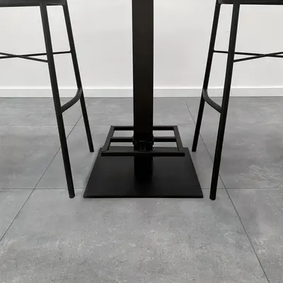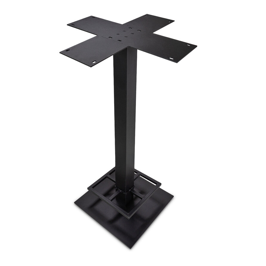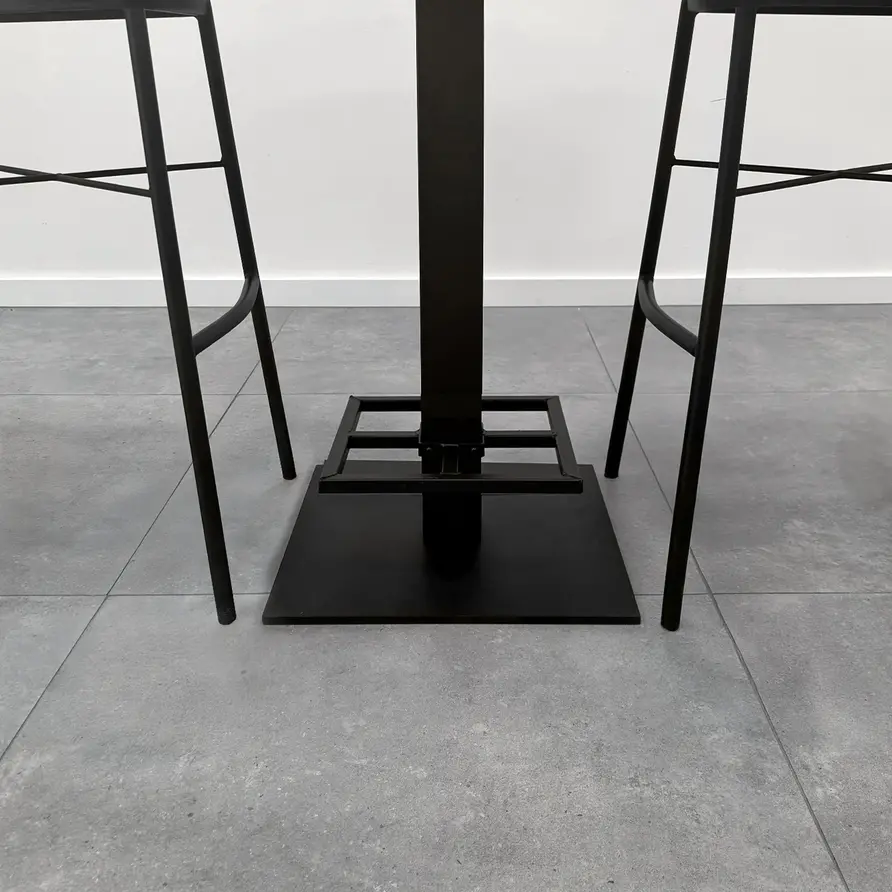 Geschikt voor: Dit onderstel is geschikt voor ronde & vierkante tafelbladen met een afmeting van 61x61 cm (minimaal!) tot en met 105x105 cm en wordt met name gebruikt voor (horeca) bartafels van 80x80-100x100 cm.