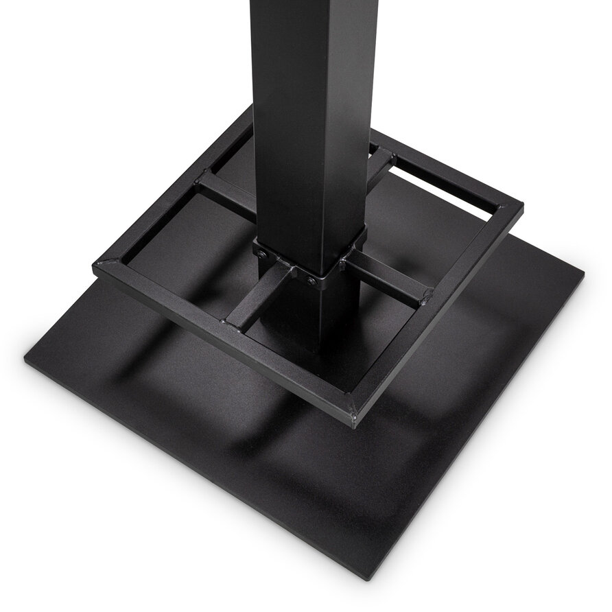 Gietijzeren bartafel onderstel - zwart - koker: 8x8 cm - met voetrand - afmeting (montageplaat): 59x59 - met voetplaat van 45x45 cm - hoogte: 108 cm - staal / metaal met zwarte poedercoating (fijnstructuur) - bar tafelonderstel voor een ronde & vierkante bartafel van 61x61 t/m 105x105 cm.