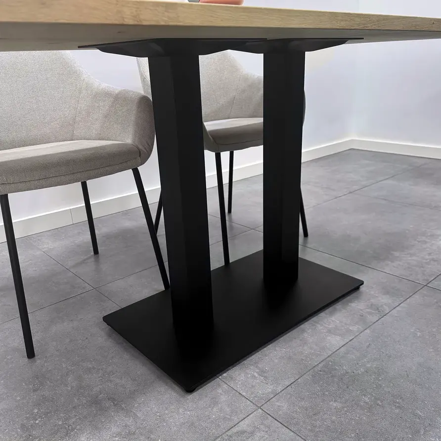 Gietijzeren (horeca)tafel onderstel - zwart - koker: 8x8 cm - afmeting (montageplaat): 30x66 cm (2x 30x30 cm) - met voetplaat van 40x70 cm - hoogte: 72 cm - staal / metaal met zwarte poedercoating (fijnstructuur) - tafelonderstel voor een horecatafel van 100x60 t/m 180x90 cm.