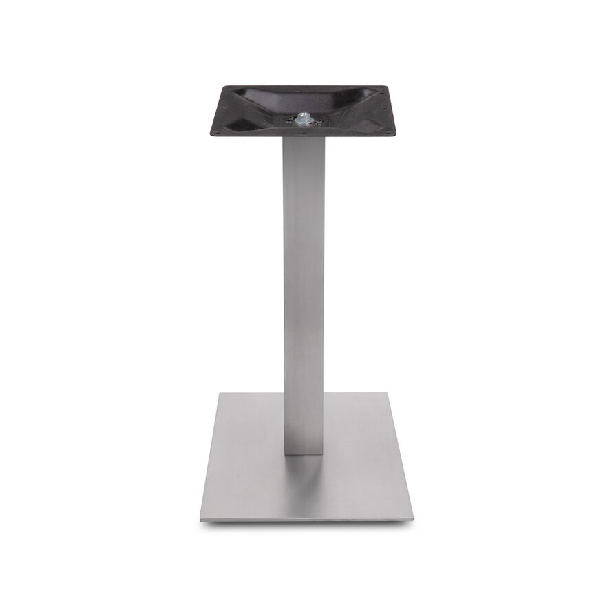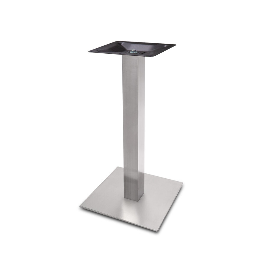 Een RVS look "horeca tafelpoot" van stevig & voordelig gietijzer, ideaal voor een mooie ronde of vierkante bistrotafel! Dit mooie stalen (horeca / bistro) tafelonderstel is voorzien van een hoogwaardige poedercoating. De toegankelijke vormgeving, de robuuste 8x8 cm "kokermaat", de stevige voetplaat en de moderne coating in RVS look zorgen voor een stijlvol bistro tafel onderstel, erg populair in combinatie met onze eiken tafelbladen.
