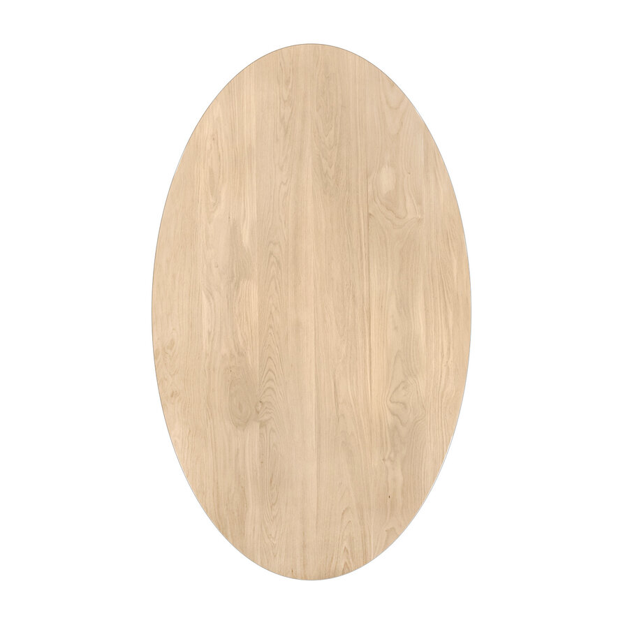 Een ovaal eiken tafelblad - van stijlvol foutvrij eikenhout en 2,7 cm dik - in verschillende (vaste) afmetingen. Een prachtig verlijmd ellips tafelblad met elegante uitstraling & luxe brede lamel, optioneel met verjongde rand. Configureer naar wens! Lees meer