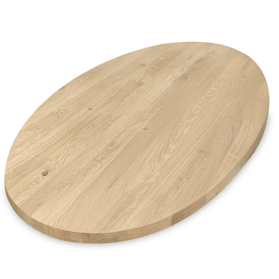Eiken tafelblad - ovaal / ellips - 4 cm dik - rustiek eikenhout (B/C) - verlijmd, smalle lamel - 40 mm