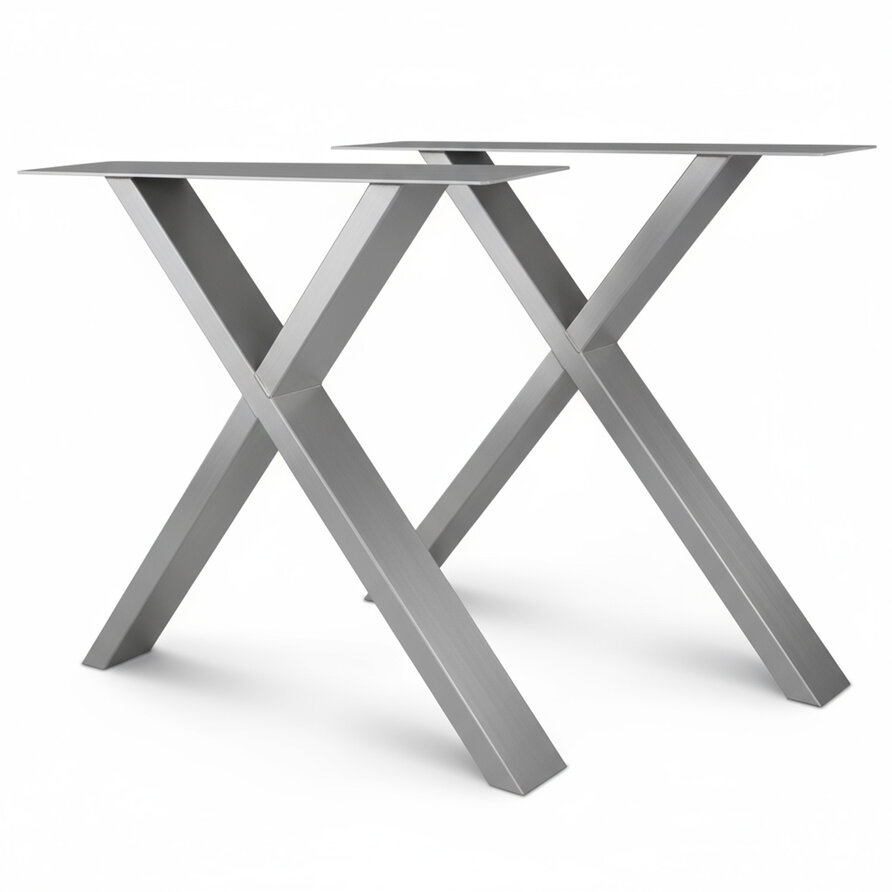 Stalen X poten - RVS - koker: 4x10 cm - breedte: 78 cm - hoogte: 72 cm - X-tafelpoot - geborsteld roestvrij staal (304)