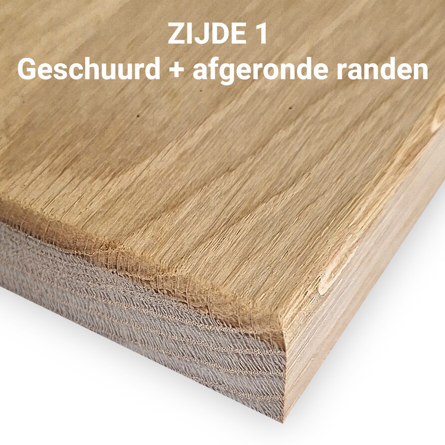 Let op: Eikenhout is een natuurproduct met unieke tekeningen, accenten, kleurnuances & kenmerken. Een groter eiken tafelblad kan visueel aanzienlijk verschillen van een proefstuk, en ook de kleurtint van een behandeling kan altijd wat afwijken.