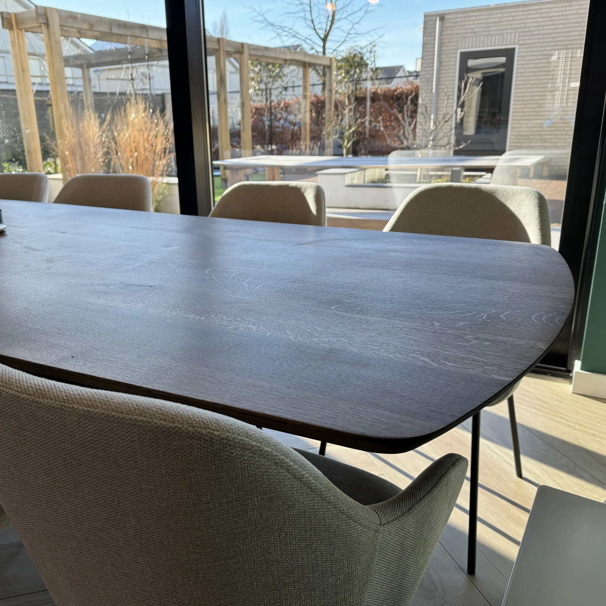 Een Deens ovaal tafelblad oogt trendy en geeft het tafelblad een modern accent, perfect voor een stijlvolle look. Ook is een Deens ovale tafel erg praktisch, aangezien er aan beide "kopse kanten" nog een stoel geplaatst kan worden. De weergegeven vorm is gebaseerd op een tafel van 200x100 cm. Dit geeft een goede indruk van het ontwerp, maar de uiteindelijke vorm kan - afhankelijk van de door u gekozen afmeting - enigszins afwijken