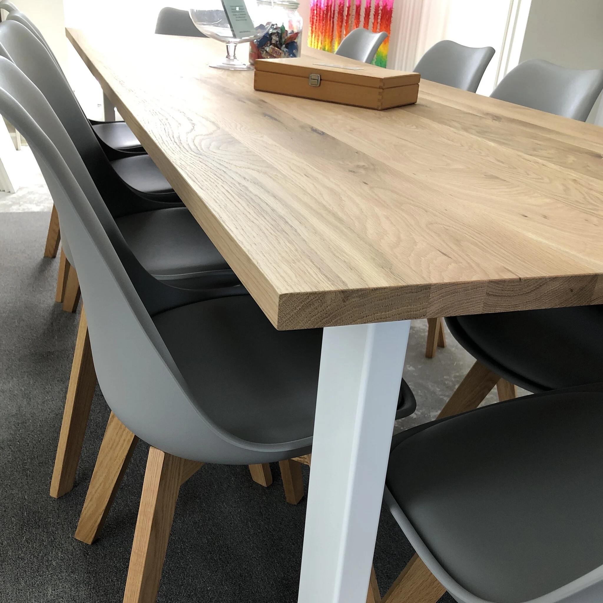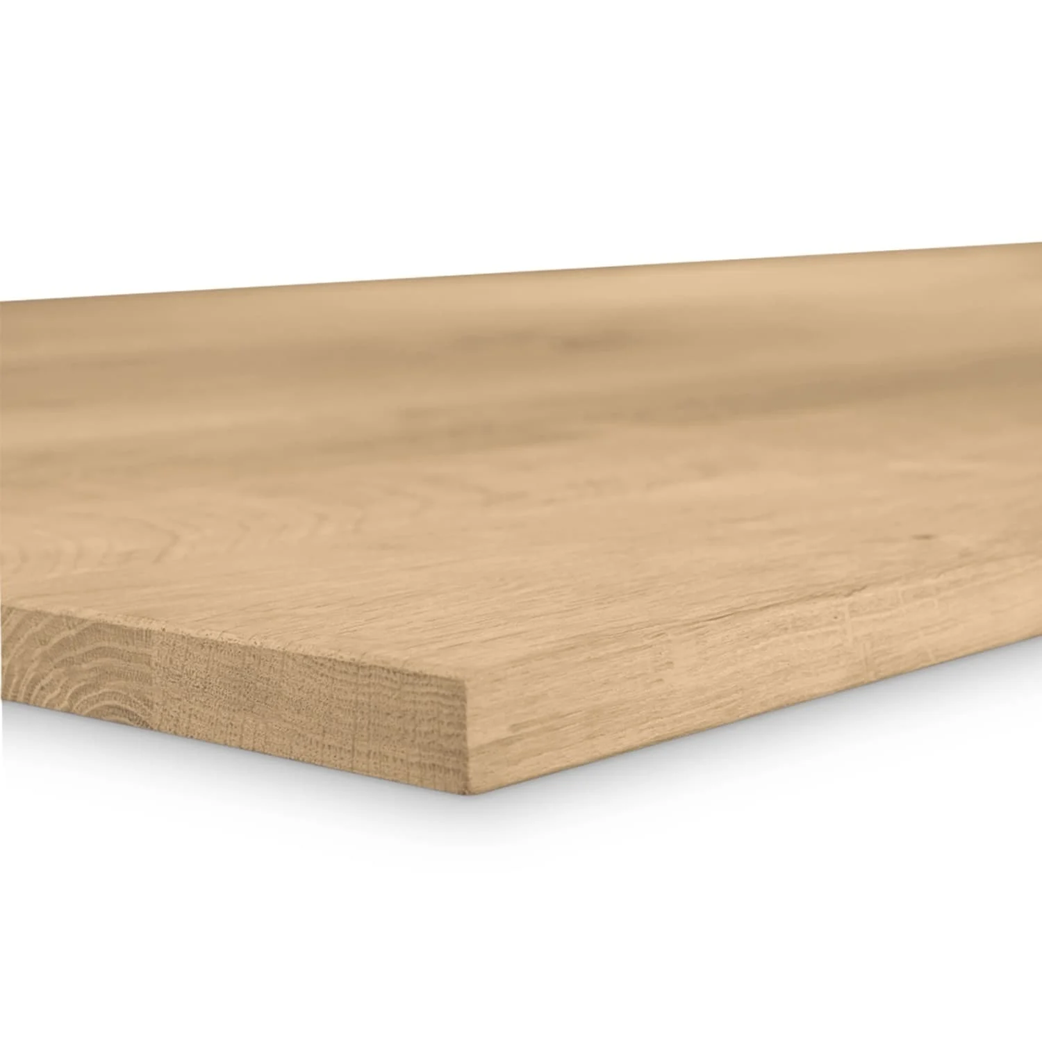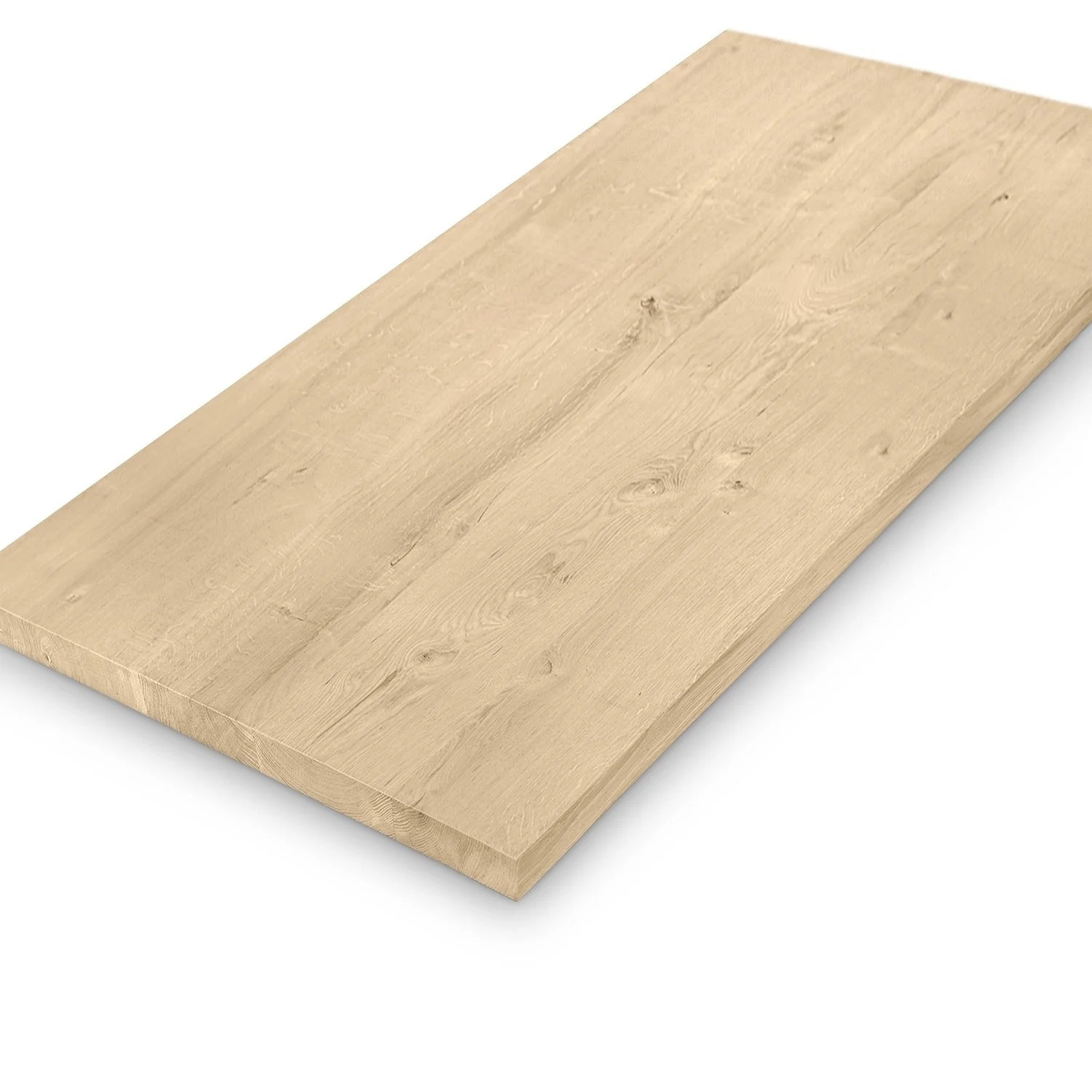 Een eiken tafelblad met rechte randen wordt standaard met afgeronde randen uitgeleverd. In dit geval wordt de randen "gebroken" met een 2 mm radius vellingkantje / facetrandje. Houd hierbij rekening met de volgende zaken: