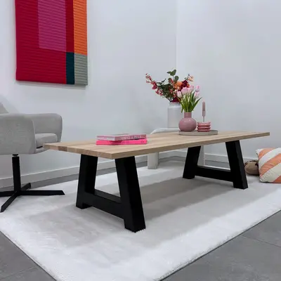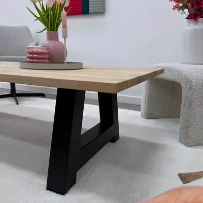 Een stoere, zwarte 8x8 cm stalen salon A-tafelpoot - 60 cm breed en 41 cm hoog - geschikt voor een salontafel vanaf 62 cm breed. Deze robuuste & sfeervolle A-poten set (2 stuks) van staal / metaal is zwart gecoat, ideaal voor een mooie (eiken) salontafel Lees meer