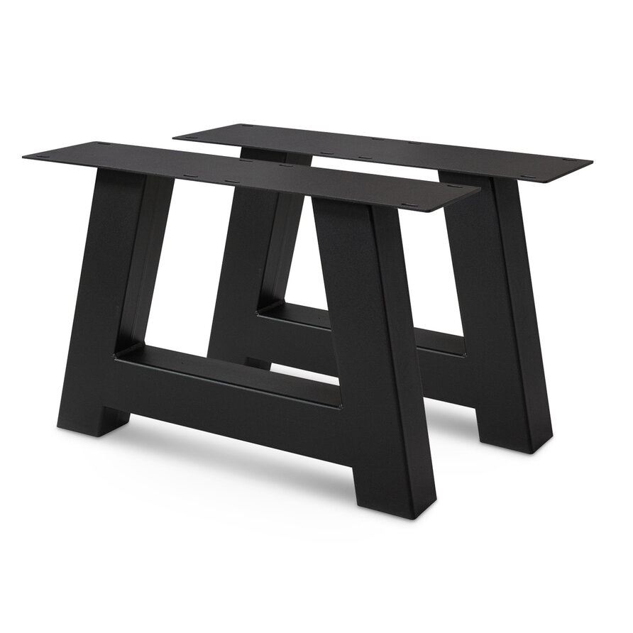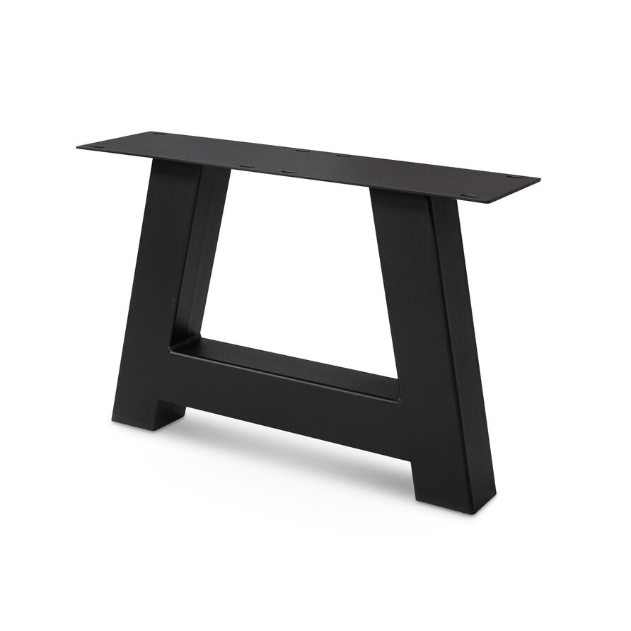 Stalen salontafel A-poten - zwart - set (2 stuks) - 8x8 cm - afmeting montageplaat: 17x60 cm - breedte onderkant: 58 cm - hoogte: 41 cm - staal / metaal met zwarte poedercoating (fijnstructuur) - A-tafelpoot voor een (salon/bijzet)tafel vanaf 62 cm breed.