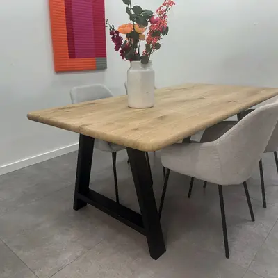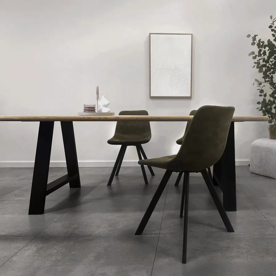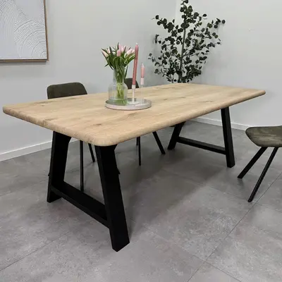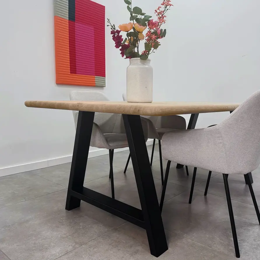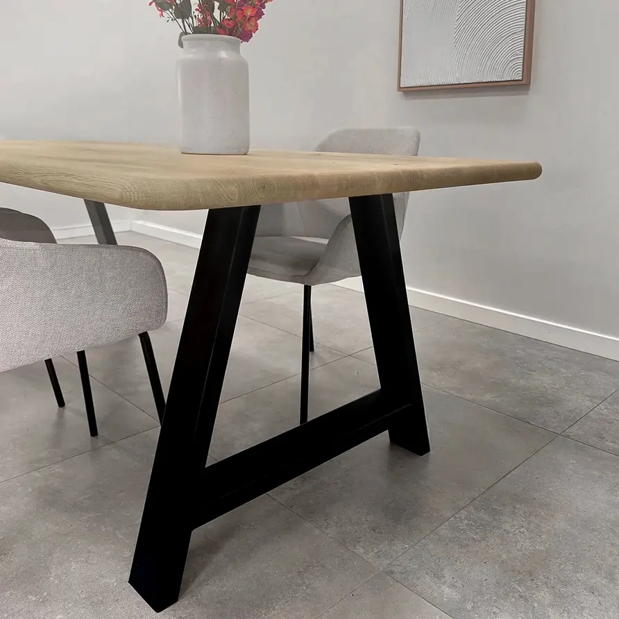 Een zwarte A poot van stevig staal, ideaal voor een mooie (eet)tafel! Deze mooie stalen tafelpoot wordt ambachtelijk gemaakt (gelast) en voorzien van een hoogwaardige poedercoating. De sfeervolle A-poot vorm, de elegante 4x10 cm "kokermaat" en de stoere (mat)zwarte fijnstructuur coating zorgen voor een prachtige zwarte tafelpoot, erg populair in combinatie met onze eiken tafelbladen. De poten worden als set van twee stuks geleverd, en de weergegeven prijs is altijd de setprijs.