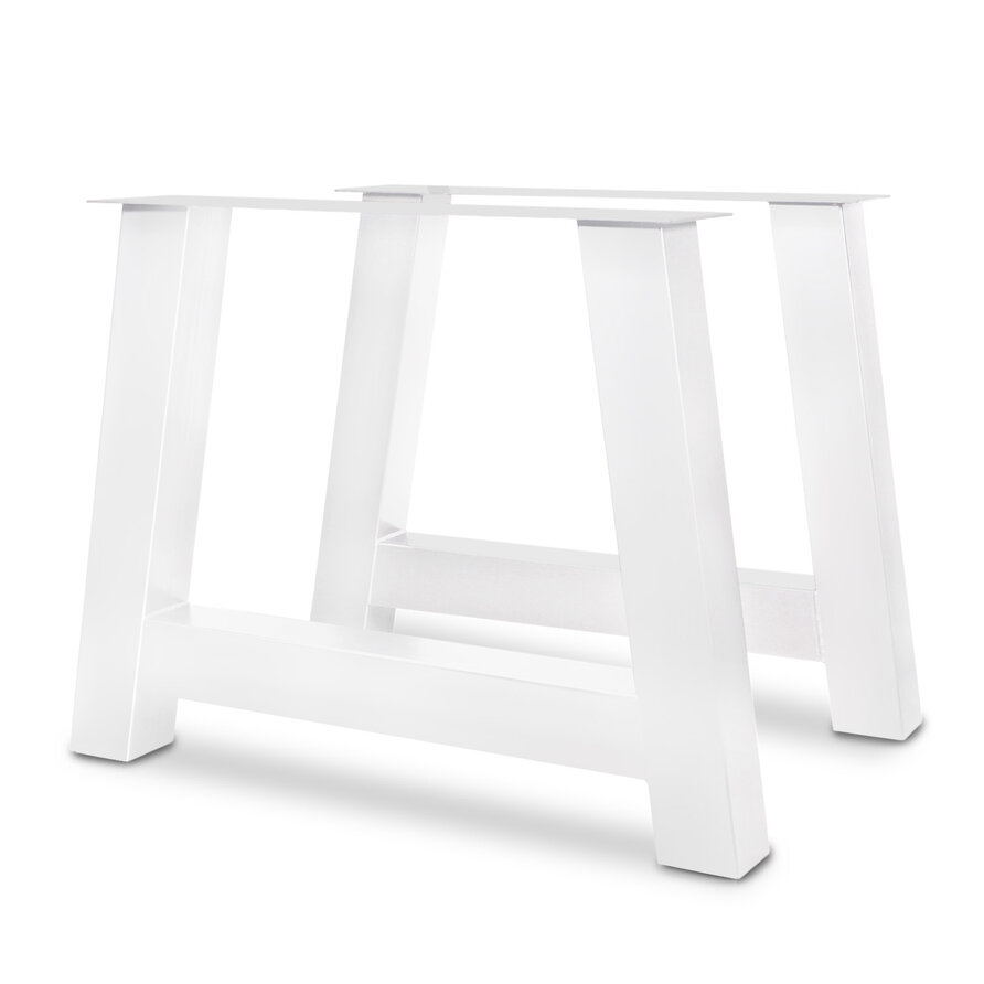 Stalen A-poten - wit - set (2 stuks) - 10x10 cm - breedte (montageplaat): 78 cm - breedte onderkant: 95 cm - hoogte: 72 cm - staal / metaal met witte poedercoating (glad) - A-tafelpoot voor een (eet)tafel vanaf 97 cm breed.