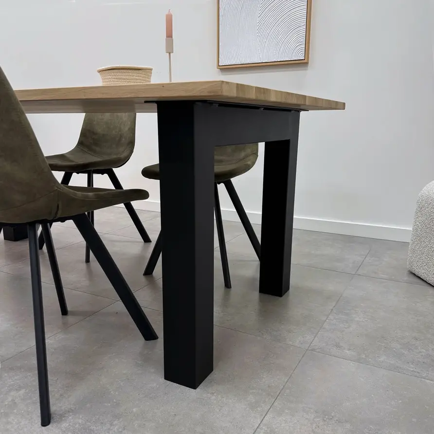 Geschikt voor: Deze tafelpoot van staal is geschikt voor tafelbladen met een breedte vanaf 80 cm (minimaal!) en wordt met name gebruikt voor tafelbladen van 90-100 cm breed.