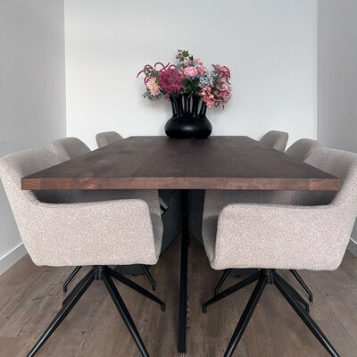 Een zwarte matrix spinpoot van stevig staal, ideaal voor een mooie (eet)tafel! Dit mooie stalen tafelonderstel wordt ambachtelijk gemaakt (gelast) en voorzien van een hoogwaardige poedercoating. De trendy matrix / spin / spider vormgeving, de slanke 3x15 cm "kokermaat" en de stoere (mat)zwarte fijnstructuur coating zorgen voor een prachtig zwart tafel onderstel, erg populair in combinatie met onze eiken tafelbladen. Deze "centrale tafelpoot" is ideaal voor ovale, Deens-ovale, halve cirkel & organische tafelbladen, maar ook voor rechthoekige (boomstam) tafelbladen.