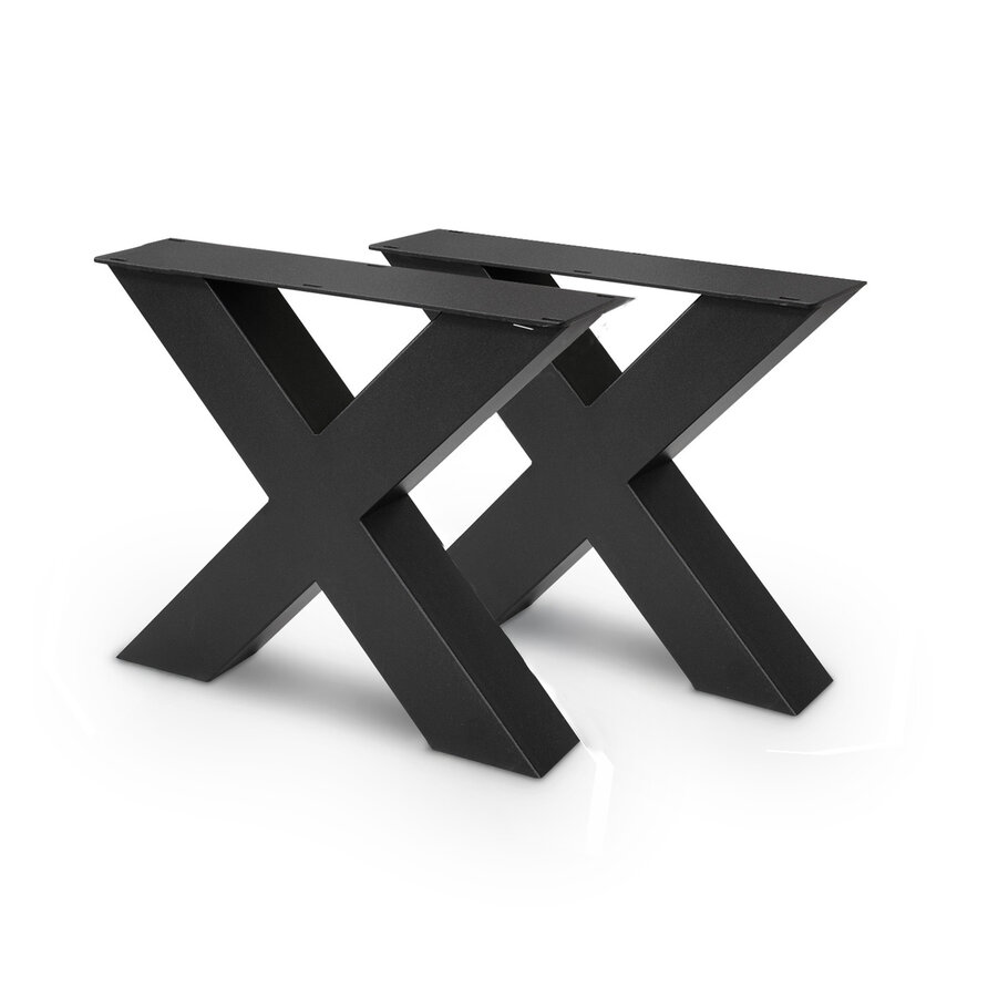 Stalen salontafel X-poten - zwart - set (2 stuks) - 8x8 cm - breedte: 56 cm - hoogte: 41 cm - staal / metaal met zwarte poedercoating (fijnstructuur) - X-tafelpoot voor een (salon/bijzet)tafel vanaf 58 cm breed.