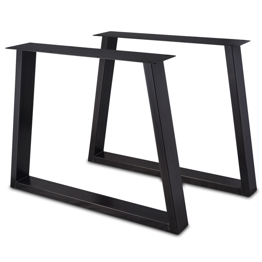 Stalen trapeze poten - zwart - set (2 stuks) - 4x10 cm - breedte (montageplaat): 78 cm - breedte onderkant: 95 cm - hoogte: 72 cm - staal / metaal met zwarte poedercoating (fijnstructuur) - trapezium tafelpoot voor een (eet)tafel vanaf 95 cm breed.