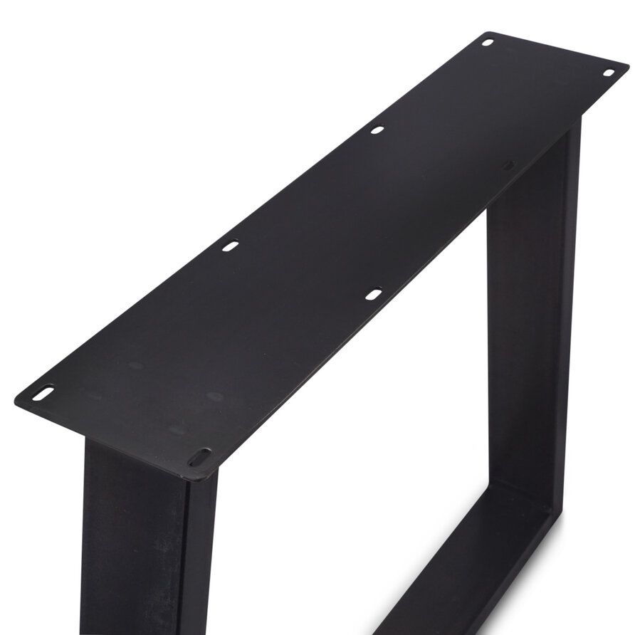 Een stoere, zwarte 4x10 cm stalen trapeze poot - 95 cm breed en 72 cm hoog - geschikt voor een tafel vanaf 95 cm breed. Deze elegante & eigentijdse trapezium tafelpoten set (2 stuks) van metaal is professioneel zwart gecoat, ideaal voor een moderne look! Lees meer