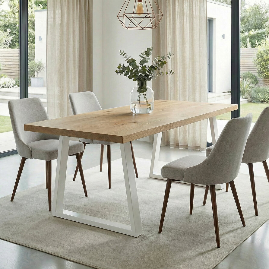 Een witte trapeze poot van stevig staal, ideaal voor een mooie (eet)tafel! Deze mooie stalen tafelpoot wordt ambachtelijk gemaakt (gelast) en voorzien van een hoogwaardige poedercoating. De eigentijdse trapezium tafelpoten vorm, de elegante 4x10 cm "kokermaat" en de frisse witte coating zorgen voor een prachtige witte tafelpoot, erg populair in combinatie met onze eikenhout tafelbladen. De poten worden als set van twee stuks geleverd, en de weergegeven prijs is altijd de setprijs.