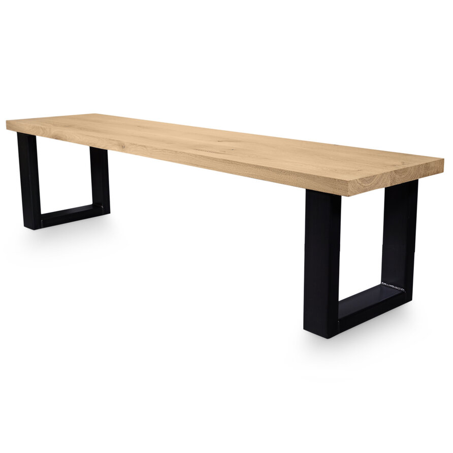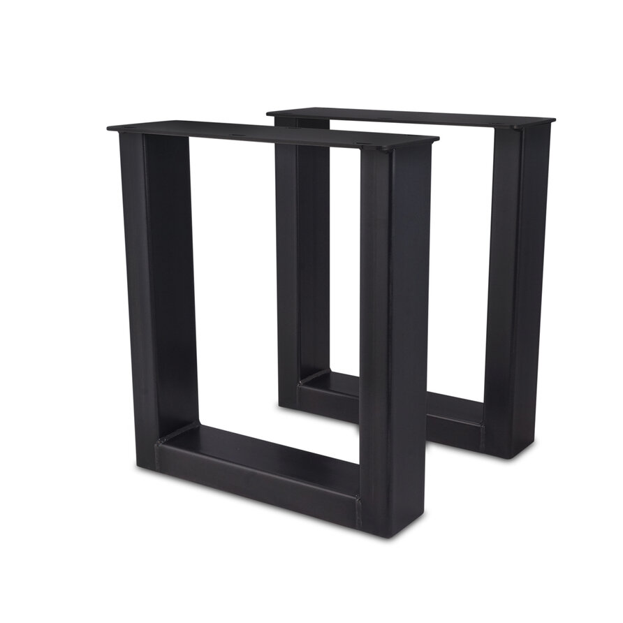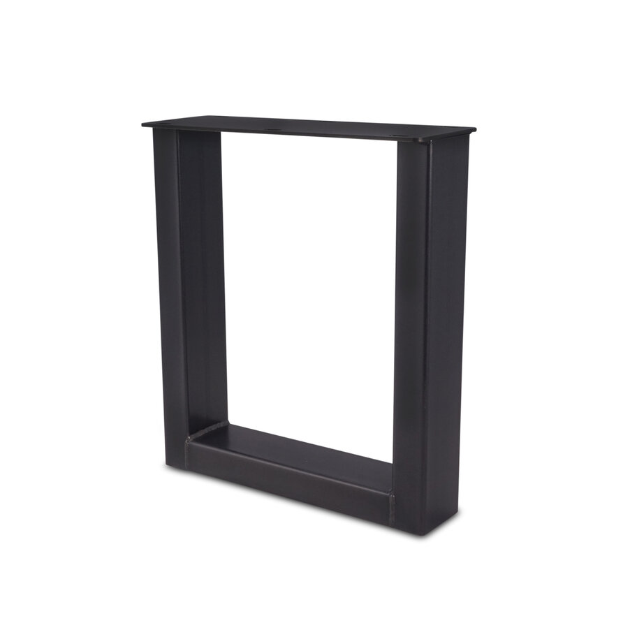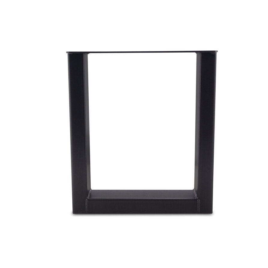 Een zwarte U bankpoot set van stevig staal, ideaal voor een mooi eetkamertafel bankje. Deze mooie stalen bank poten worden ambachtelijk gemaakt (gelast) en voorzien van een hoogwaardige poedercoating. De stijlvolle U-poot vorm, de elegante 8x4 cm "kokermaat" en de stoere (mat)zwarte fijnstructuur coating zorgen voor een prachtige metalen bank poot, erg populair in combinatie met onze eiken (bank)bladen. De poten worden als set van twee stuks geleverd, en de weergegeven prijs is altijd de setprijs.