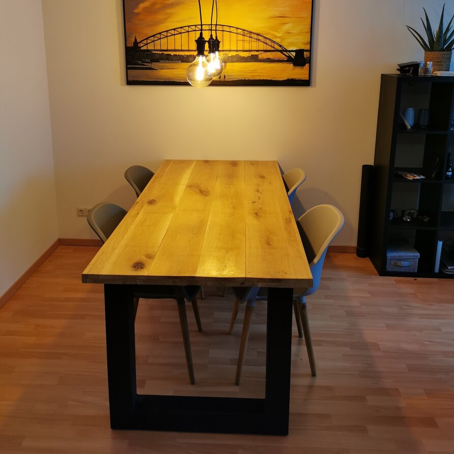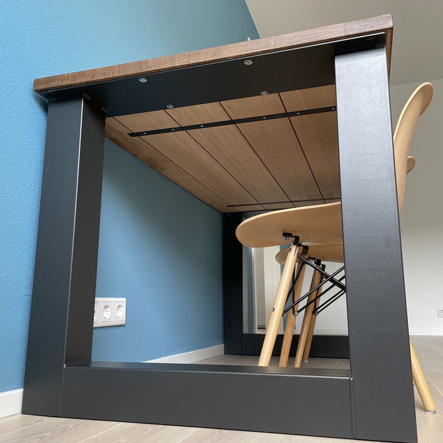 Geschikt voor: Deze tafelpoot is geschikt voor tafelbladen met een breedte vanaf 80 cm (minimaal!) en wordt met name gebruikt voor tafelbladen van 90-100 cm breed.