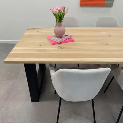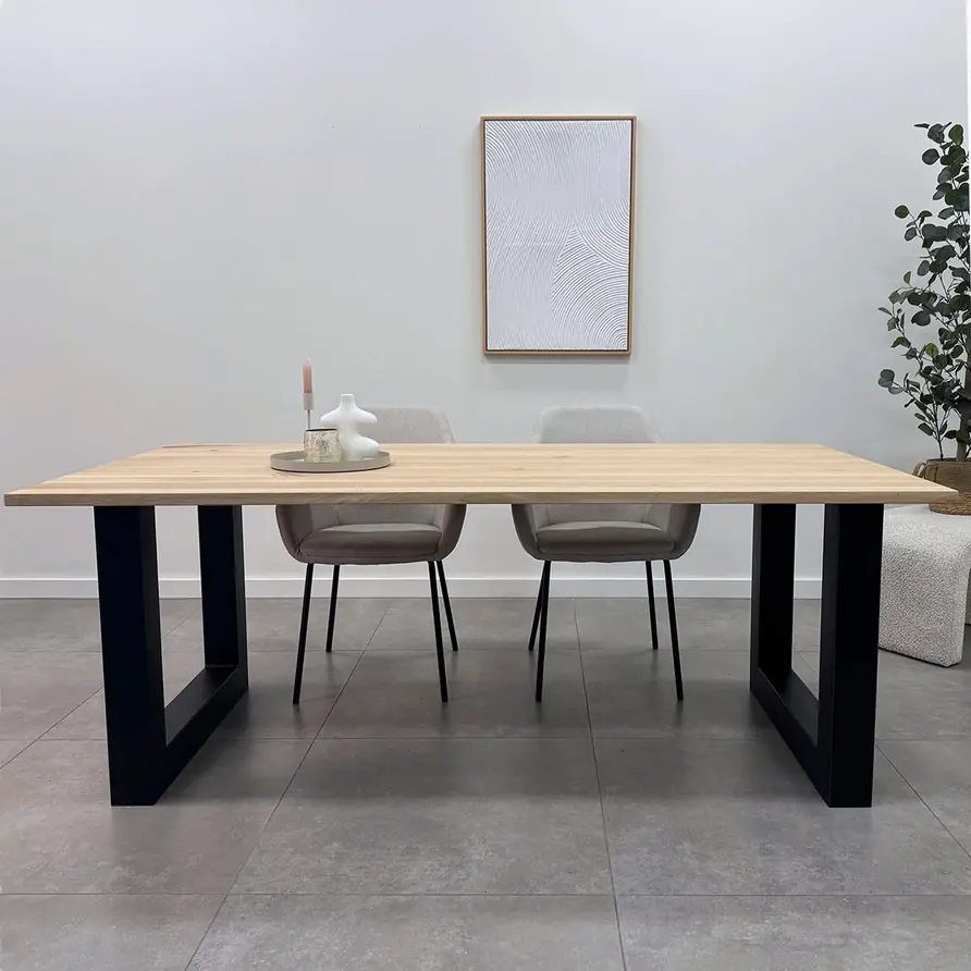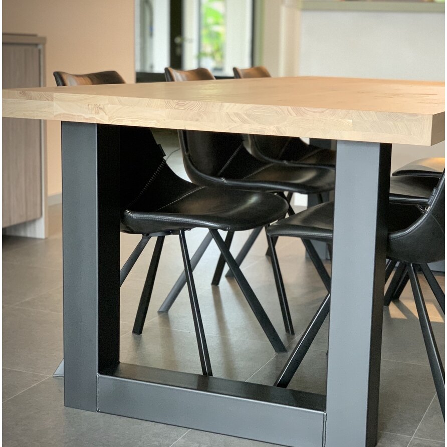 Een zwarte U eettafel poot van stevig staal, ideaal voor een mooie (eet)tafel! Deze mooie stalen tafelpoot wordt ambachtelijk gemaakt (gelast) en voorzien van een hoogwaardige poedercoating. De stijlvolle stalen U-poot vorm, de robuuste 10x10 cm "kokermaat" en de stoere (mat)zwarte fijnstructuur coating zorgen voor een prachtige zwarte tafelpoot, erg populair in combinatie met een eikenhouten tafelblad. De poten worden als set van twee stuks geleverd, en de weergegeven prijs is altijd de setprijs.