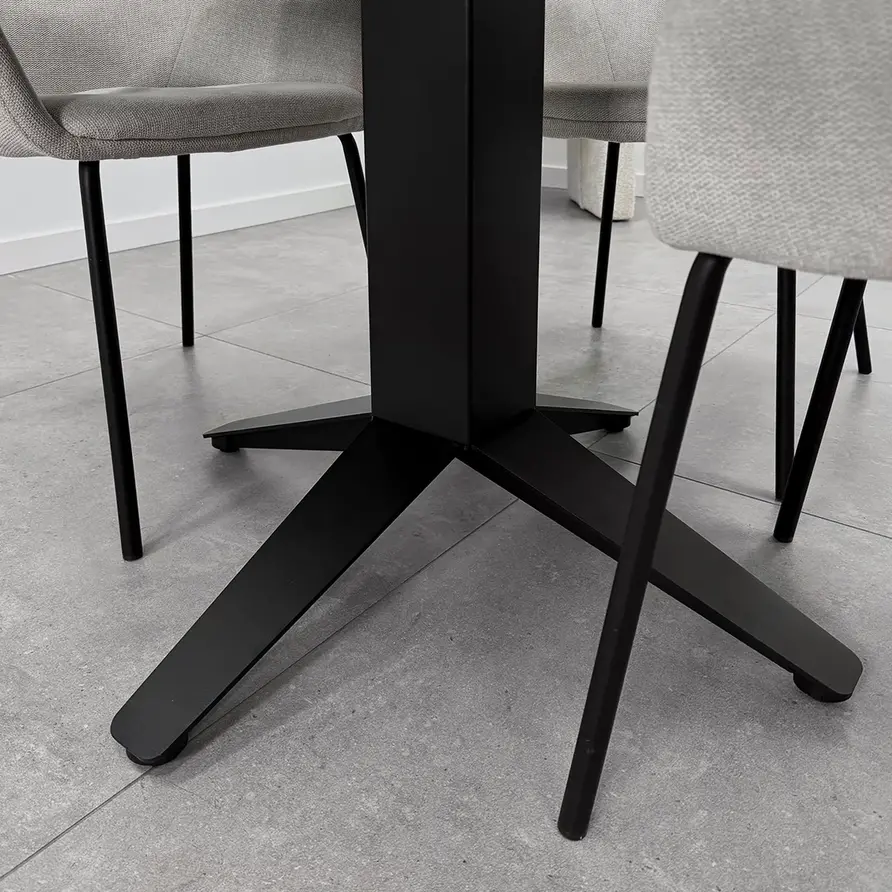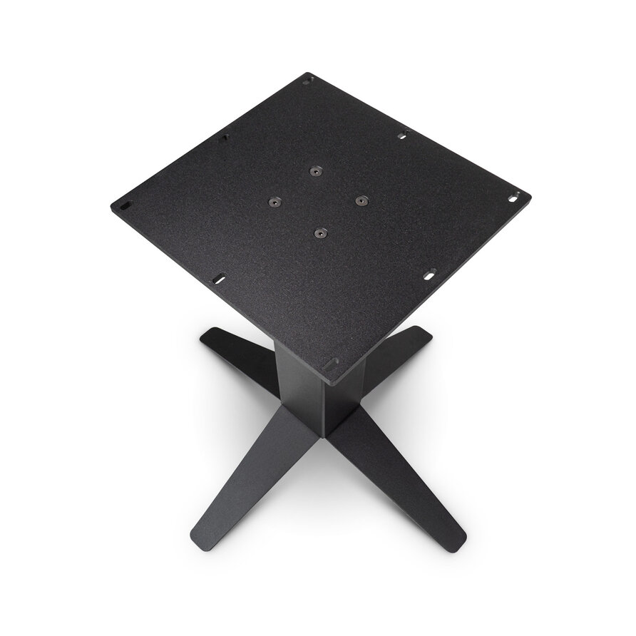 Een stoer, zwart stalen viervoet onderstel - 76x76 cm groot en 72 cm hoog - voor een ronde & vierkante tafel van 80x80 - 125x125 cm. Dit stijlvolle tafelonderstel van metaal is zwart gecoat, een prachtige "centrale tafelpoot" voor een moderne look! Lees meer