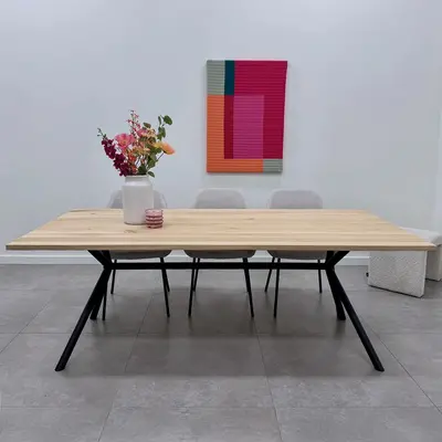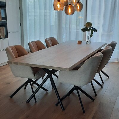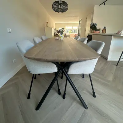 X-frame rond 70x196 cm: Voor tafelbladen van 75-100 cm breed en 200-240 cm lang.