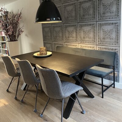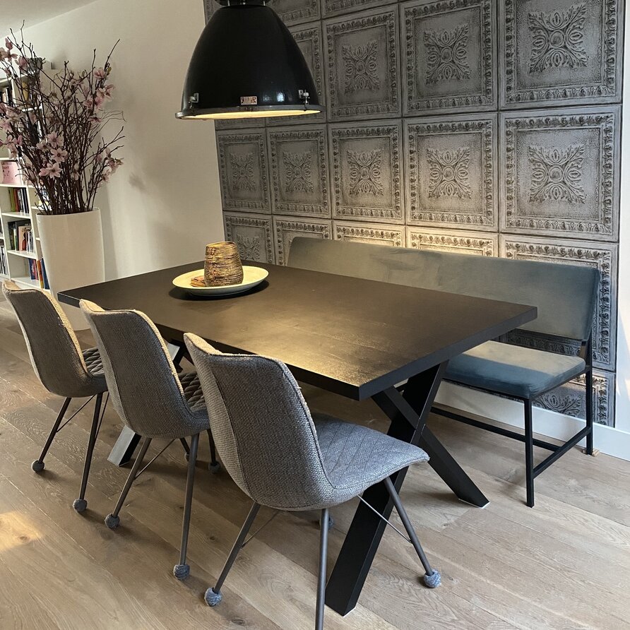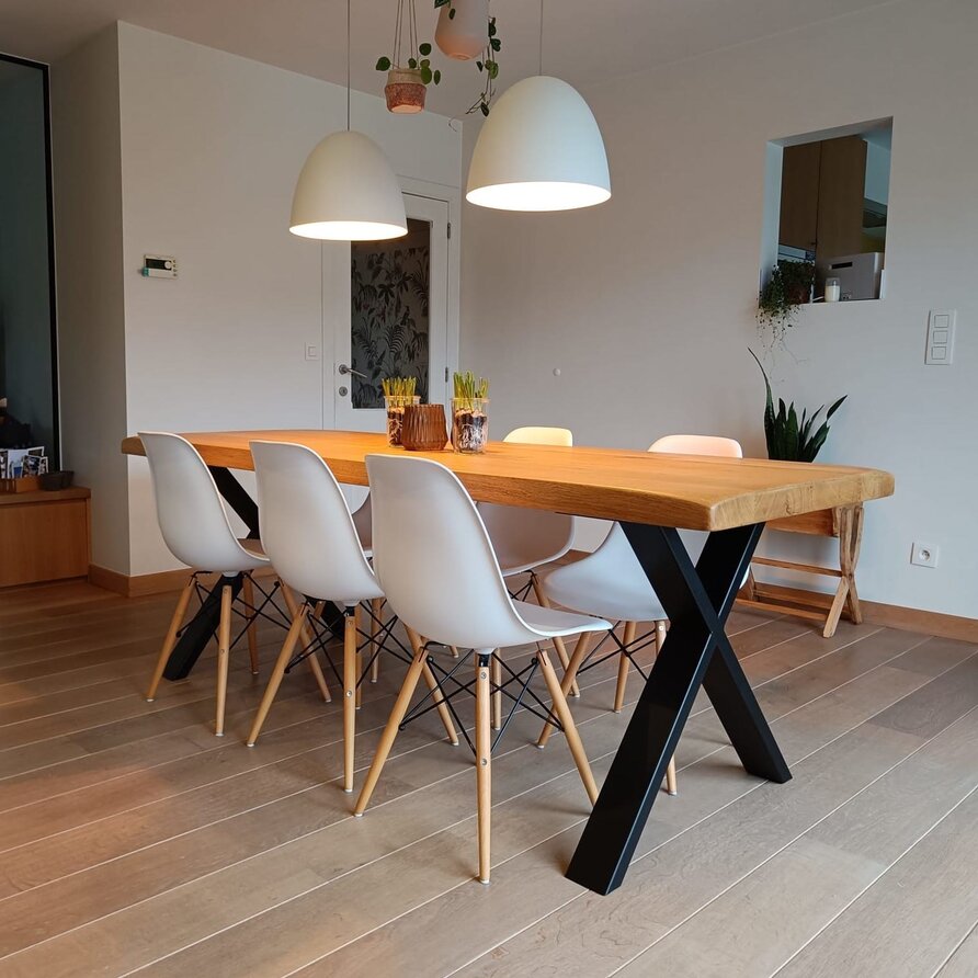Een zwarte X poot van stevig staal, ideaal voor een mooie (eet)tafel! Deze mooie stalen tafelpoot wordt ambachtelijk gemaakt (gelast) en voorzien van een hoogwaardige poedercoating. De trendy X-tafelpoot vorm, de elegante 4x10 cm "kokermaat" en de stoere (mat)zwarte fijnstructuur coating zorgen voor een prachtige zwarte tafelpoot, erg populair in combinatie met onze eiken tafelbladen. De poten worden als set van twee stuks geleverd, en de weergegeven prijs is altijd de setprijs.