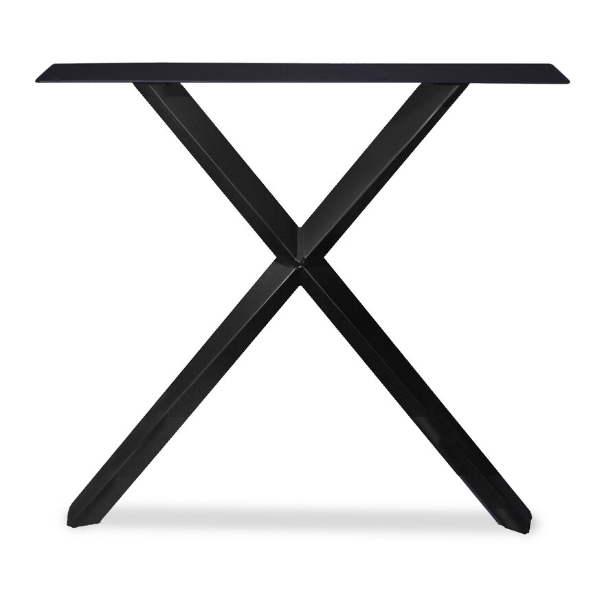 Stalen X-poten - zwart - set (2 stuks) - 5,5x5,5 cm (twist) - breedte (montageplaat): 78 cm - breedte onderkant: 70 cm - hoogte: 72 cm - staal / metaal met zwarte poedercoating (fijnstructuur) - X-tafelpoot voor een (eet)tafel vanaf 80 cm breed.