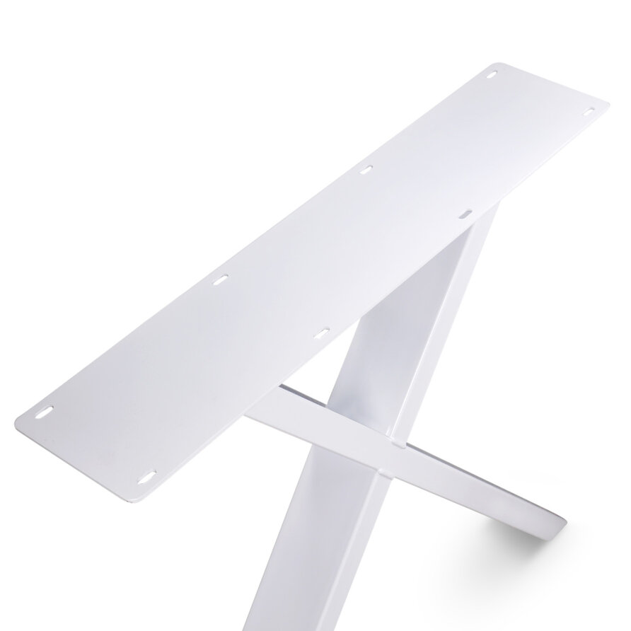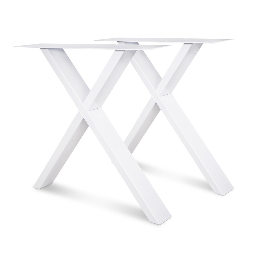 Een frisse, witte 4x10 cm stalen X-poot - 78 cm breed en 72 cm hoog - geschikt voor een tafel vanaf 80 cm breed. Deze elegante & trendy X-tafelpoten set (2 stuks) van staal / metaal is professioneel wit gecoat, ideaal voor een moderne look! Lees meer