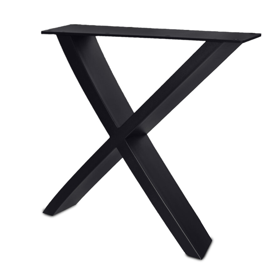 Stalen X-poten - zwart - set (2 stuks) - 5x15 cm - schuin (10°) - breedte: 84 cm - hoogte: 72 cm - staal / metaal met zwarte poedercoating (fijnstructuur) - schuine X-tafelpoot voor een (eet)tafel vanaf 86 cm breed.