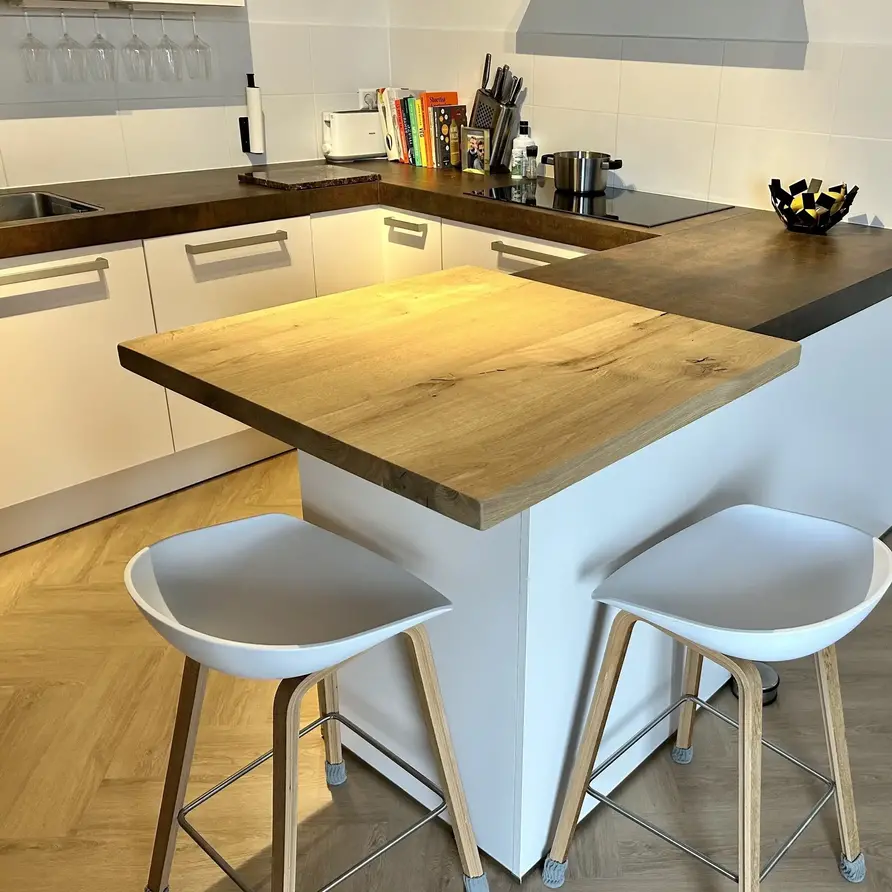 Een vierkant eiken tafelblad - van sfeervol rustiek eikenhout en 4 cm dik - in verschillende (vaste) afmetingen. Een prachtig verlijmd tafelblad met luxe brede lamel. Diverse randopties, configureer uw vierkante tafelblad compleet naar wens! Lees meer