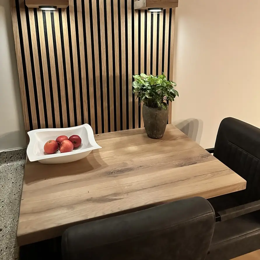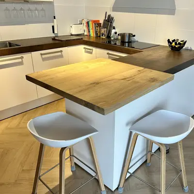 Eiken tafelblad - vierkant - op maat - 4 cm dik - rustiek eikenhout (B/C) - verlijmd, brede lamel (9-12 cm) - 40 mm